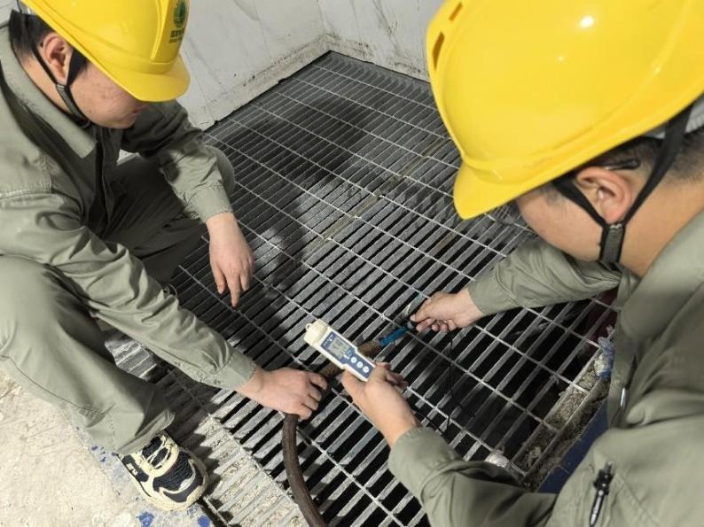 施州换流站运维人员正在检测反渗透膜反洗液PH值。