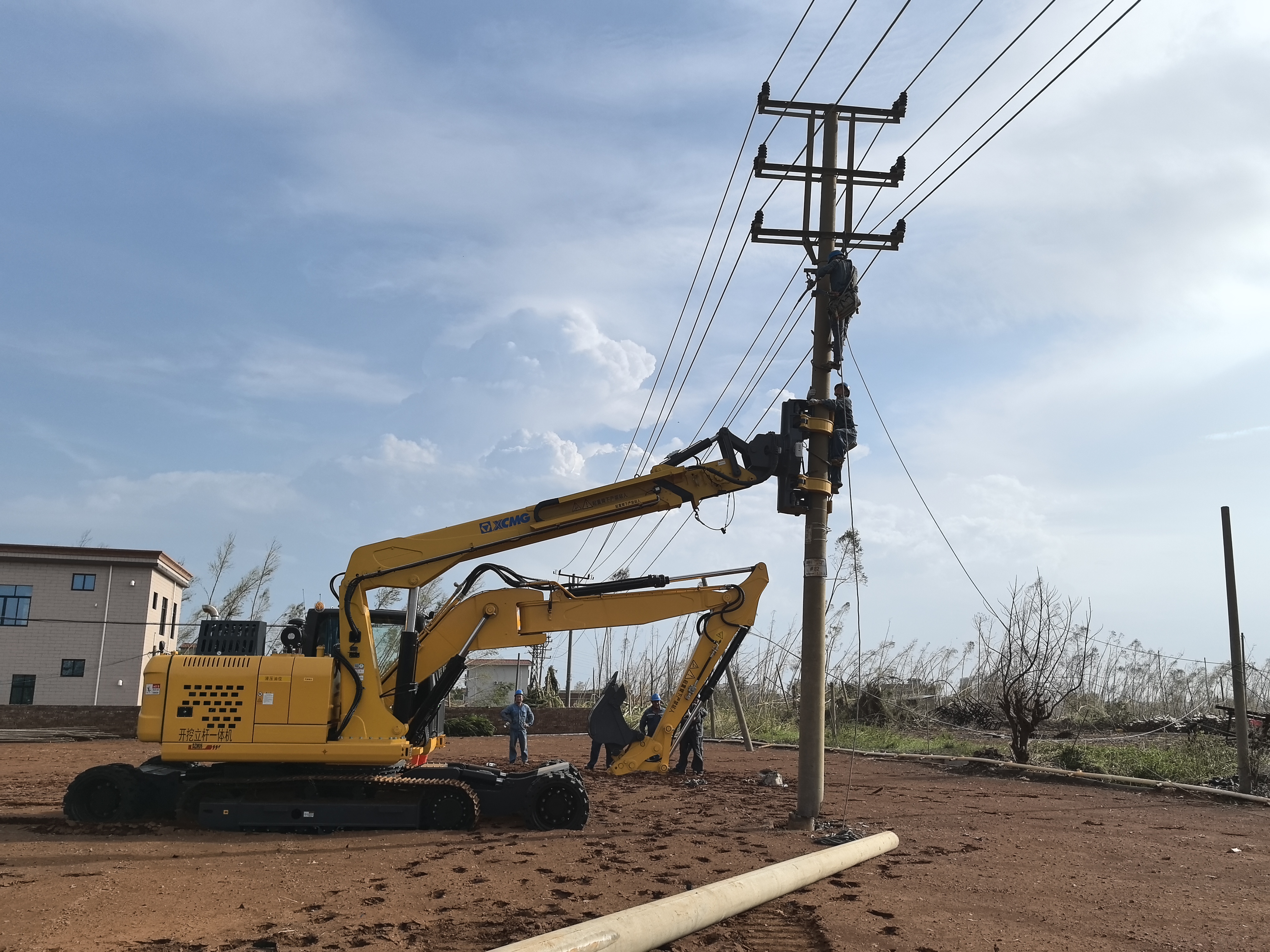 国内先进的路履两用遥控多功能钻孔立杆机器人在台风应急抢险中发挥重要作用。邓木玲摄