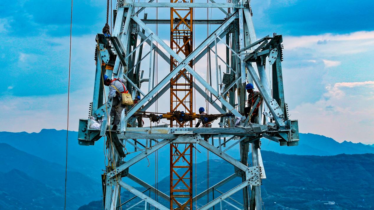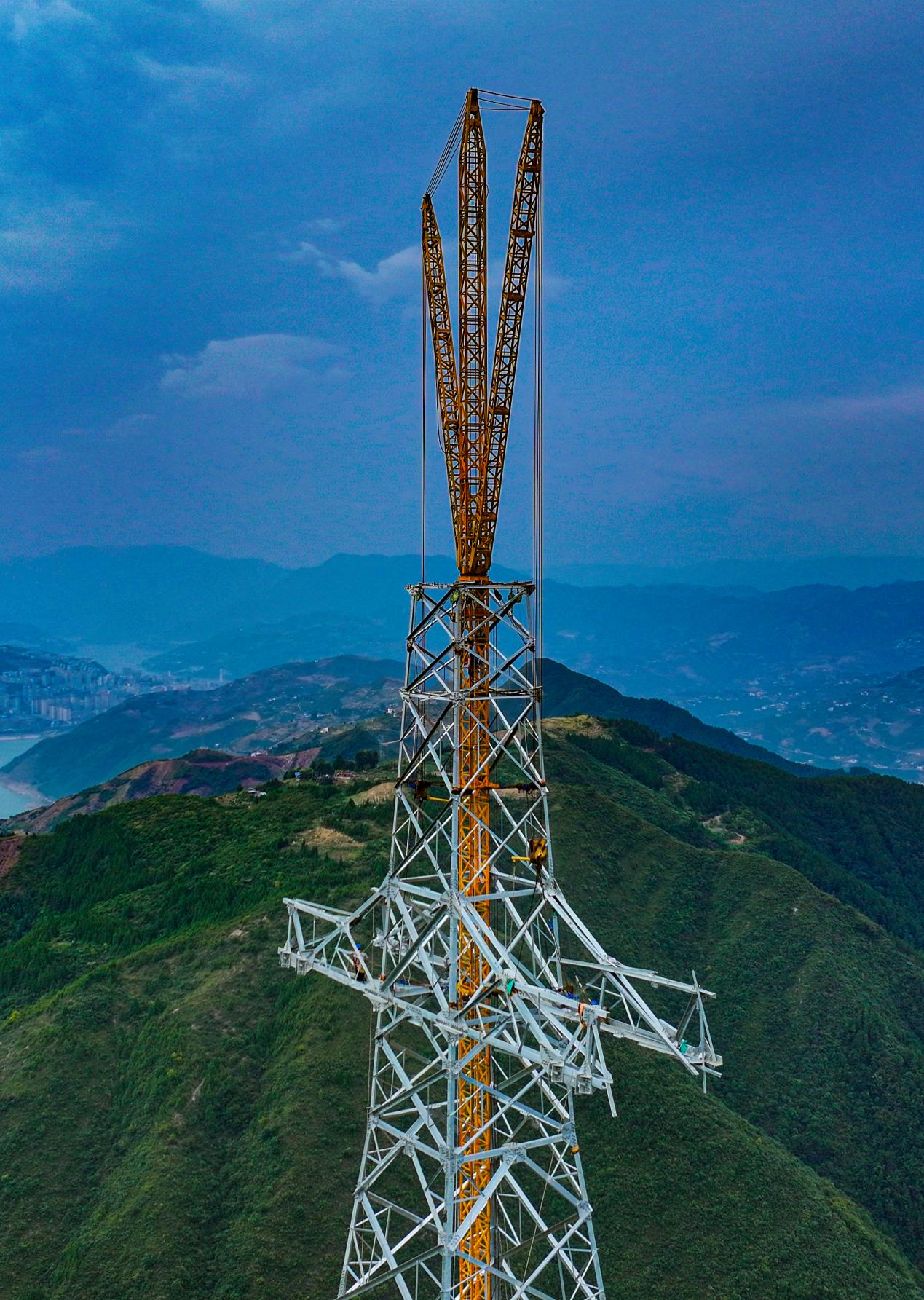 在超1000米的海拔、近70度的陡坡、高百米的铁塔上工作,高空作业人员不仅要拼技能,更要拼胆量。烈日暴晒下,塔材温度迅速上升,作业人员隔着手套都能感受到灼热。他们的皮肤被骄阳晒成了古铜色,工作服早已全身湿透,脸上砸落的汗珠没有影响到他们精准作业,手上拼装塔材、锁紧螺栓的动作依旧有条不紊。
