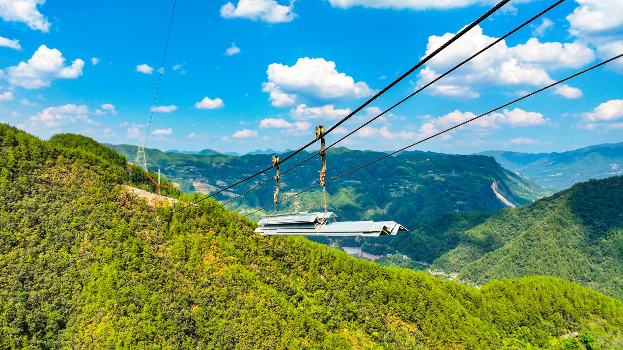 “我们在标段全线共架设41条索道,涉及71基塔位,索道长度共计超过40千米。不仅如此,施工项目部前期还精心规划索道路径,采用多跨单索循环索道运输方式,力争用最少索道覆盖最多塔位。”该标段施工项目总工李渊介绍。以N3345~N3349号铁塔为例,这条索道长2200米,一条索道串联起五基铁塔的材料运输,极大提升了物资运输效率,也在最大限度上保护了生态环境。