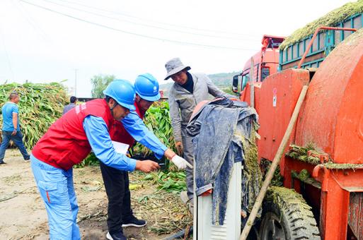 国网海东供电公司员工深入田间地头开展防外破秋收保电服务活动。(李永鹏 摄)