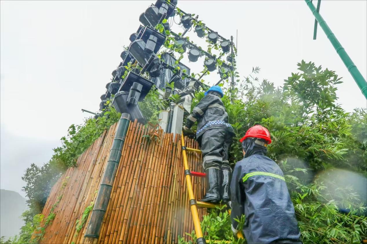 9月19日,国网浙江温州泰顺供电公司员工在下桥乡巡检监测水位设备,全力迎战台风“普拉桑”。(梅传双 摄)