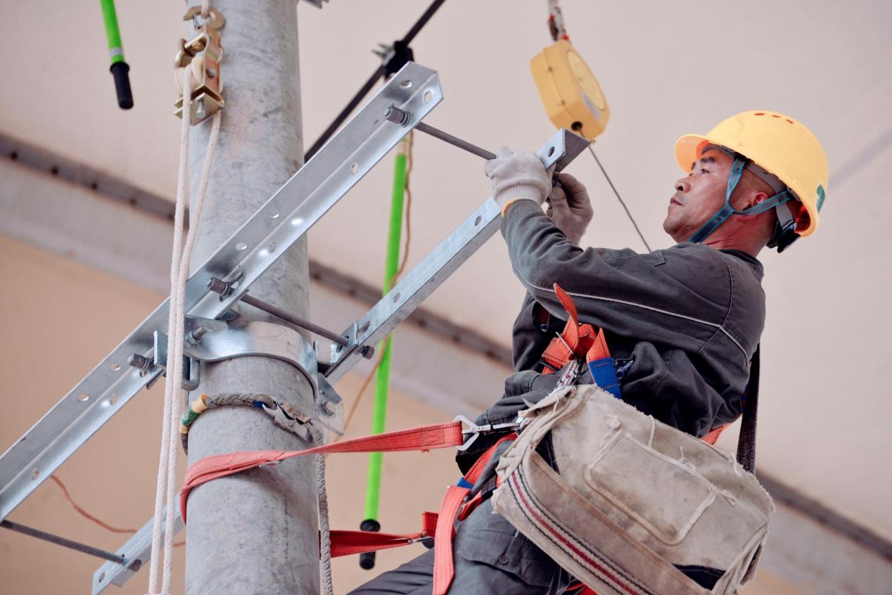 参加总决赛选手开展杆上作业实作比拼。赖俊见 摄