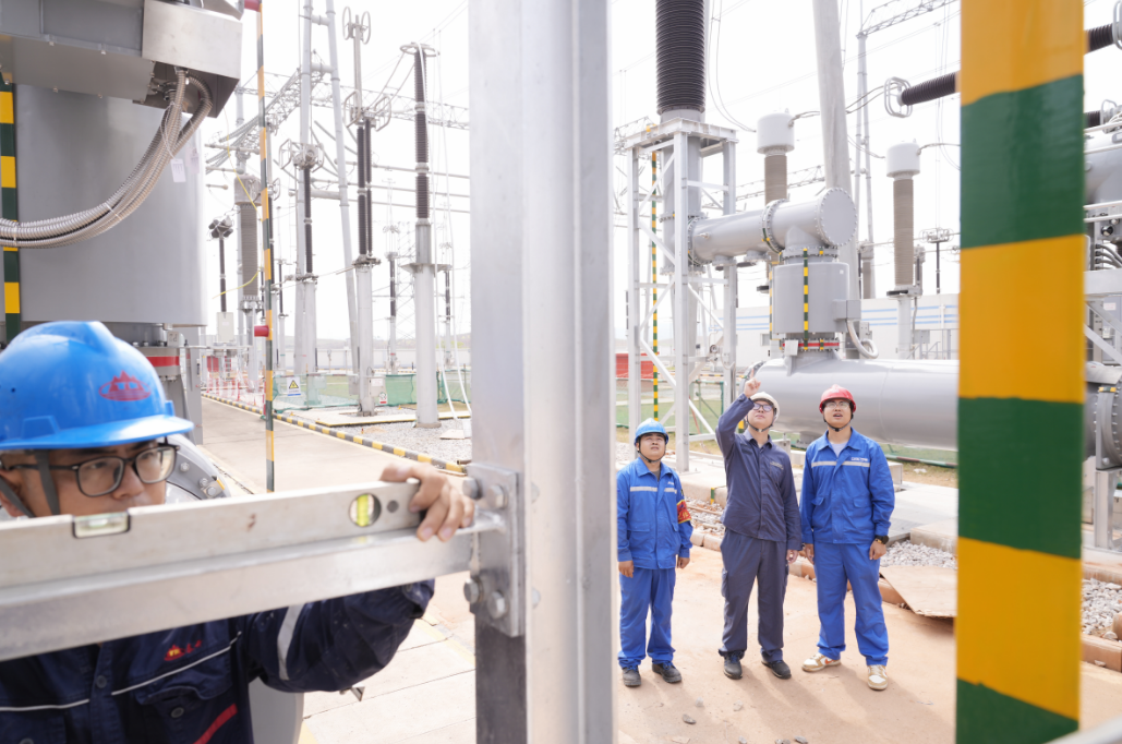 5月2日,南方电网广西电网公司工作人员在500千伏邕州变电站开展南宁抽水蓄能电站500千伏送出工程的间隔设备安装及调试工作。陈伯鑫 摄