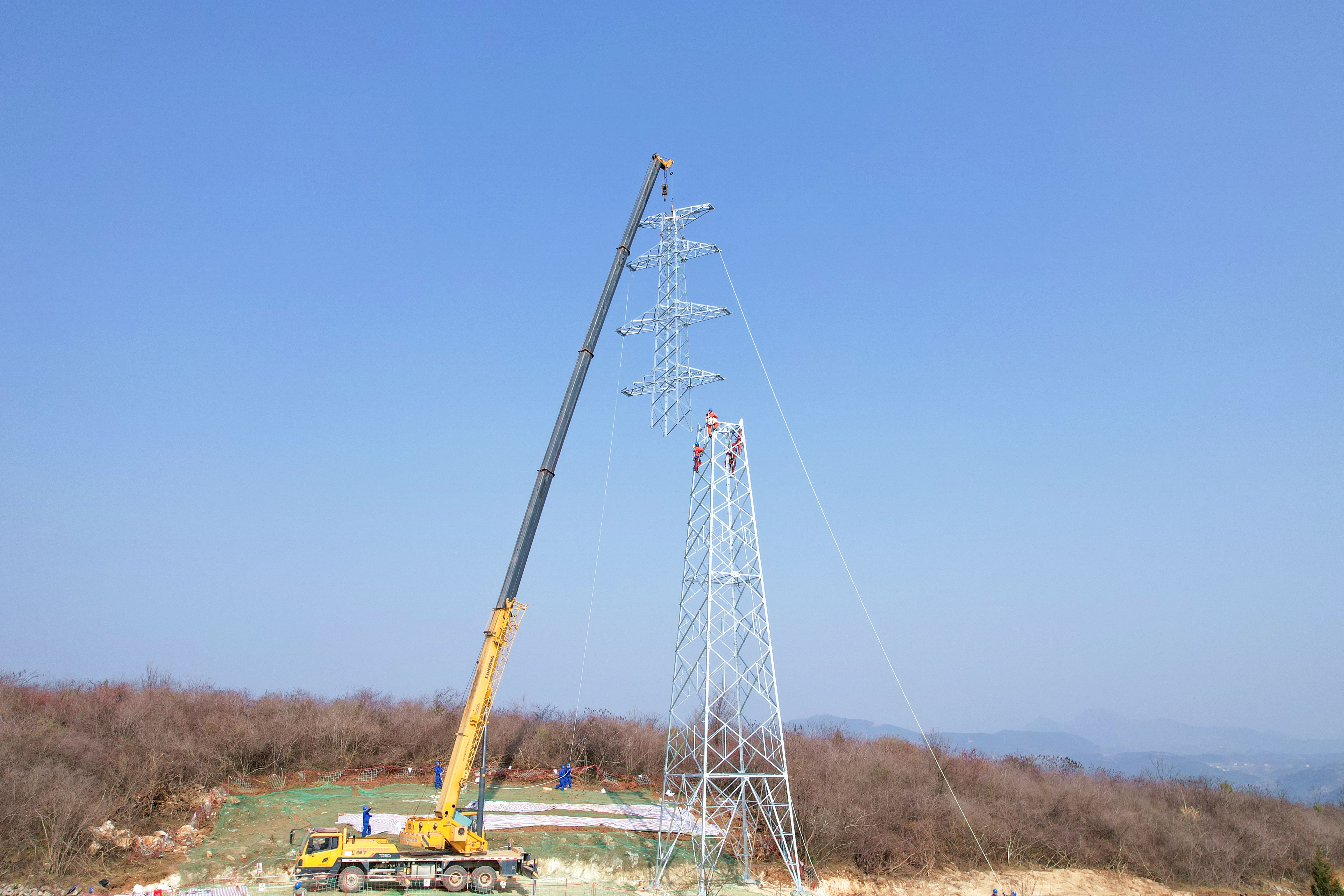 “机械化施工周期短,能精准控制安装精度,工程质效得到提升。”赵永领介绍,工程新建107基铁塔,包括11基双回路耐张塔、36基单回路耐张塔,铁塔平均呼高28.8米,最高达45米。依托机械化工法,共组织5个立塔班组,以3天/基的效率推进,全方位保障工程按里程碑节点完工。