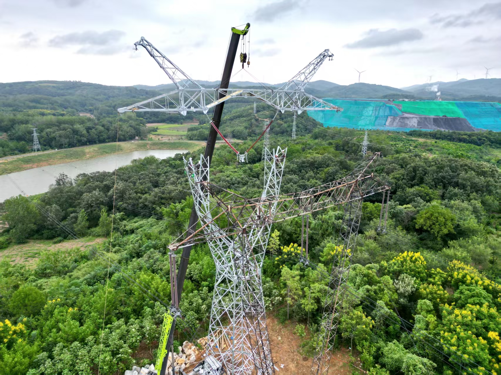 “本工程铁塔遍布在丘陵、山林等地形,地形陡峭、地质破碎,伴随着阴雨连绵的恶劣天气,多种不利条件叠加,给工程带来极大挑战。”工作负责人赵杰谈及施工难度时,语气中透露着谨慎与坚定,险峻的地形、复杂的地质条件,55吨吊车进场受限,加之多变的雨季气候,现场作业难度是同等任务下平原地区的4倍以上。种种压力如同横亘在建设者面前的“拦路虎”,令工程推进步步维艰。