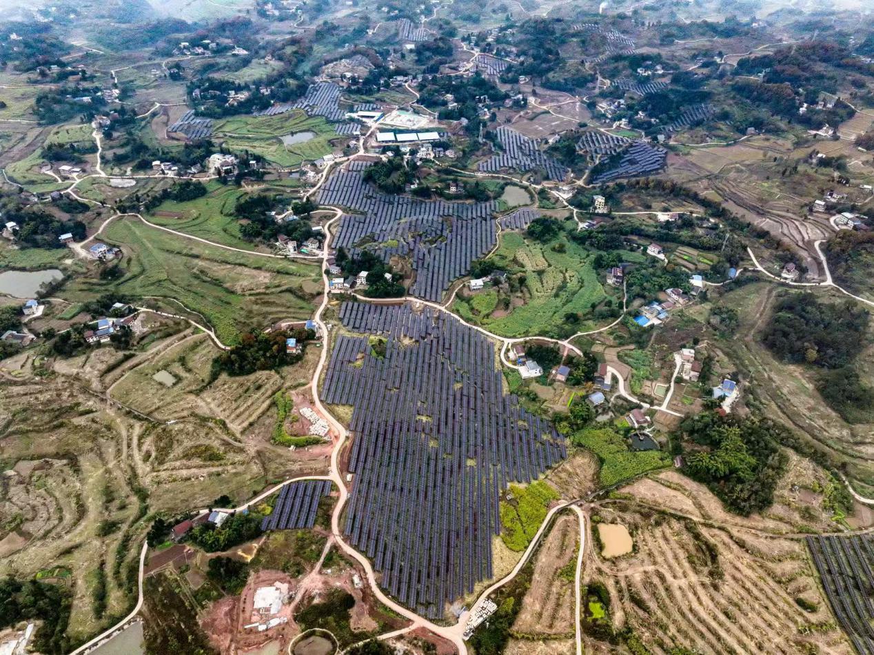 丰都县许明寺镇100兆瓦农牧光互补复合项目,将太阳能发电与农牧业有机结合,实现了能源与农业的双重效益。(蔡金林摄)