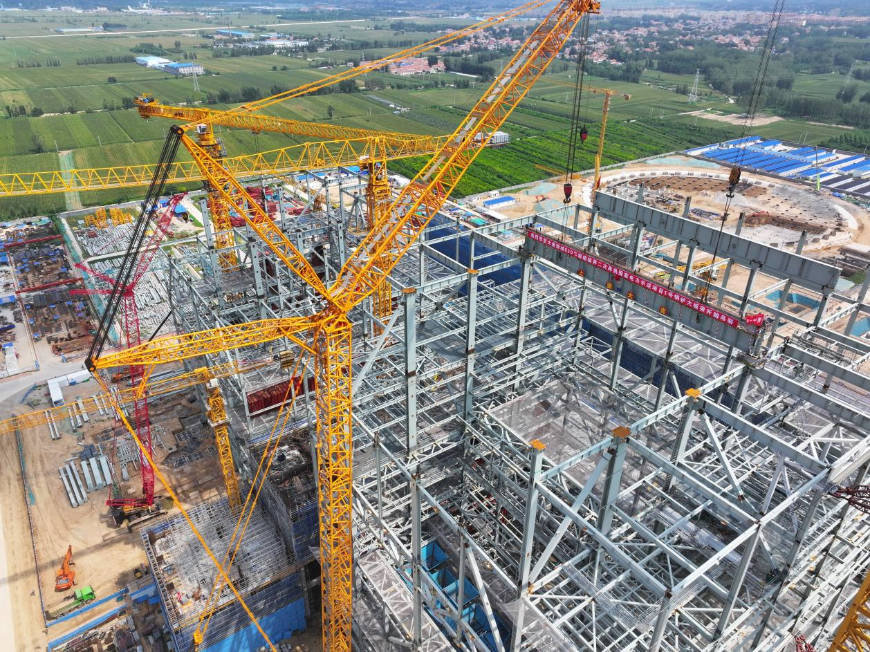 中电建核电公司参建的大唐郓城示范项目大板梁徐徐升起。