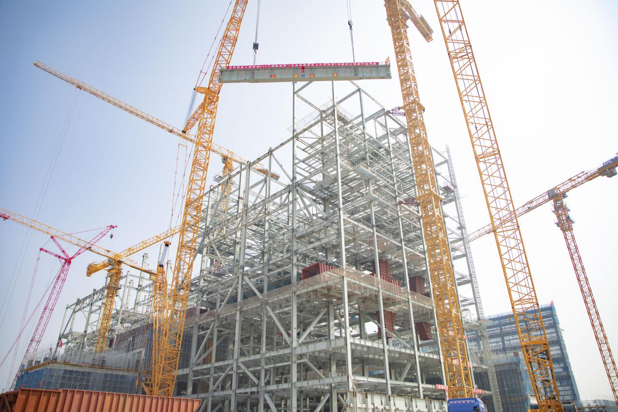 中电建核电公司参建的大唐郓城示范项目进行大板梁吊装。