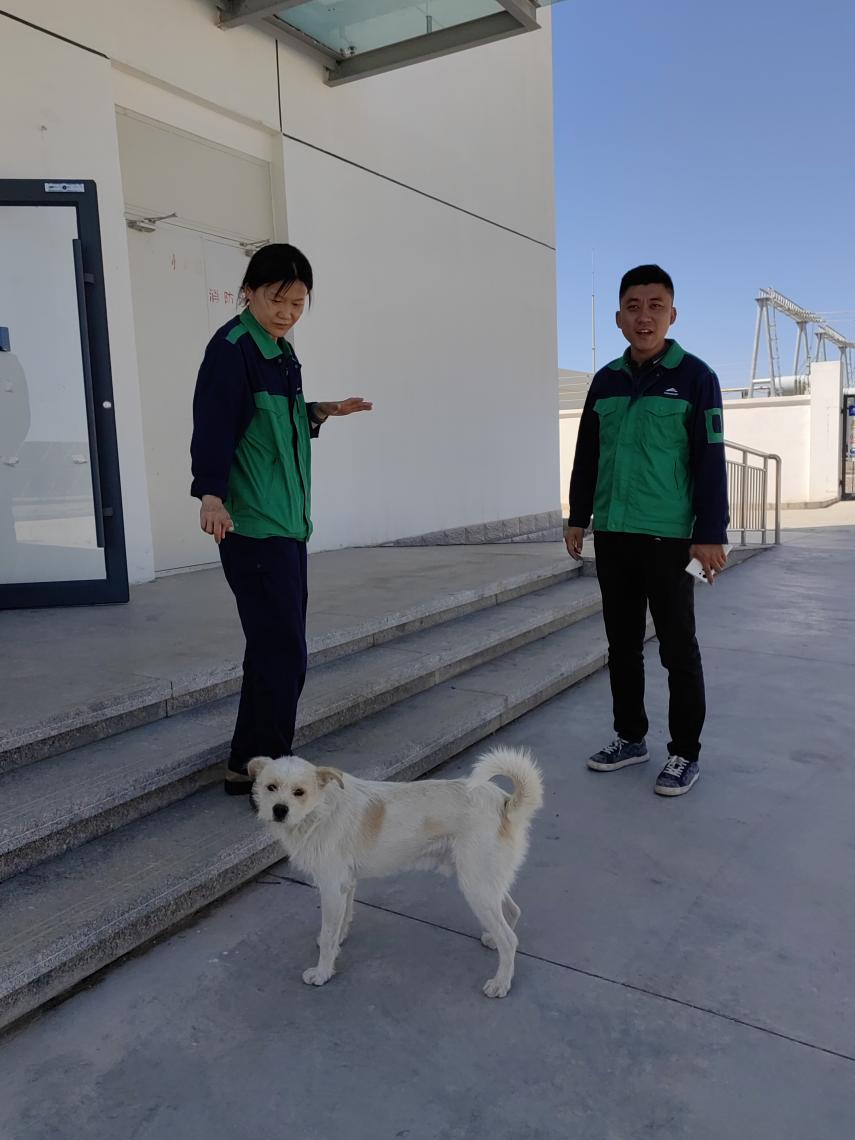 “算是吧,奶茶是只流浪狗,到了场站就再也不曾离开过。在这片戈壁里,我们敬畏每一个生命,到了这前不着村后不着店的电站,也算是缘分。”在这里工作的甘肃金泰电力有限责任公司经理侯颖微笑着说。