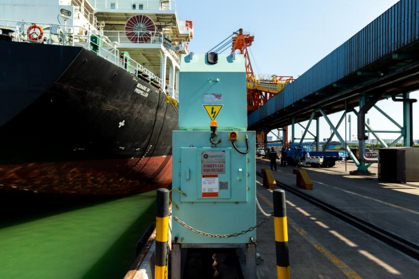 为了让岸电更便利地“走上船”,国家能源集团上下创新驱动,开展岸电技术攻关。航运公司率先开展船用岸电设备研制,并在“神华501”轮上成功应用验证,“神华501”轮也成为第一艘获得中国船级社高压岸电附加入级符号的沿海散货船;广东公司研究采用串电阻预充磁技术及软件智能逆功率控制技术,解决了励磁涌流、逆功率等技术难题;黄骅港务创新优化设备设施布局,解决了梁板式结构码头无法在码头面板上方跨越单机轨道进行电缆敷设的难题。多项创新实践,为岸电在集团公司高效推广应用提供了坚实的技术保障。