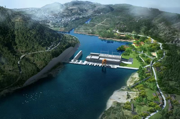 老鹰岩一级水电站效果图。
