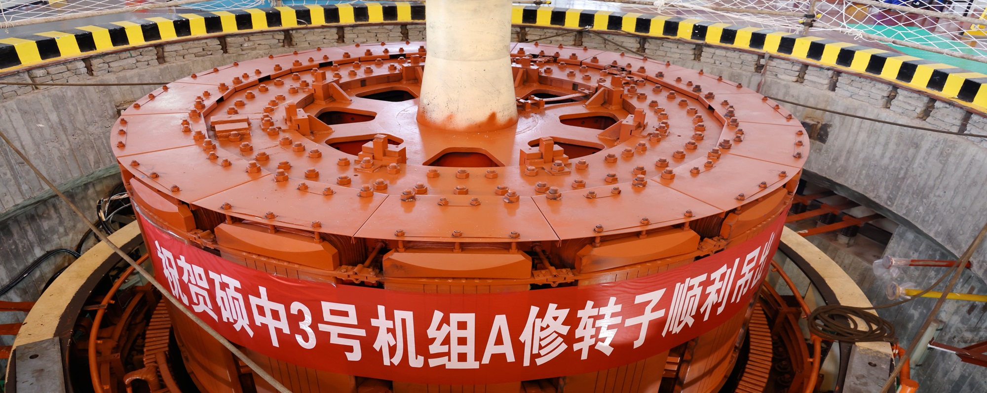 硕中3号发电机转子由转轴、支架、磁轭、磁极、制动环等部分组成,重达123吨、高7.2米,是机组拆机过程中重量最大的部件,技术难度高,起吊难度大。为确保此次转子吊装一次性安全、顺利吊装就位,该公司提前编制了详细的专项吊装方案及安全措施,分管领导亲自在岗督导,组织现场检修作业人员开展安全教育活动,进行安全技术交底,明确责任分工,并进行吊装前联合检查,确保起吊工作安全可控。最终在各专业面的配合下,硕中3号发电机转子顺利吊出平稳落地,为后续机组高质量“A”级检修工作的顺利推进奠定了坚实的基础。