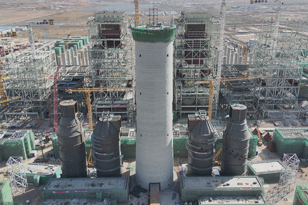 中国能源新闻网讯(杨杰 田芮)3月31日,随着3号吸收塔最后一带壁板精准落位,国家能源集团宁夏腾格里中卫电厂4x660兆瓦机组扩建工程实现里程碑突破——四座巨型脱硫吸收塔集群提前25天全面封顶,标志着国内最大“沙戈荒”项目调峰机组环保设施主体结构完工。