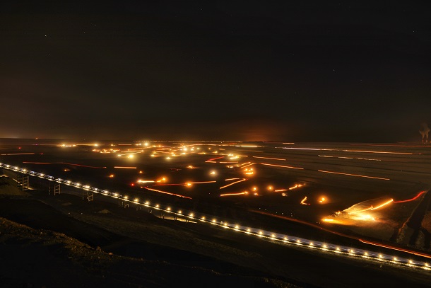 准东露天煤矿生产夜景。