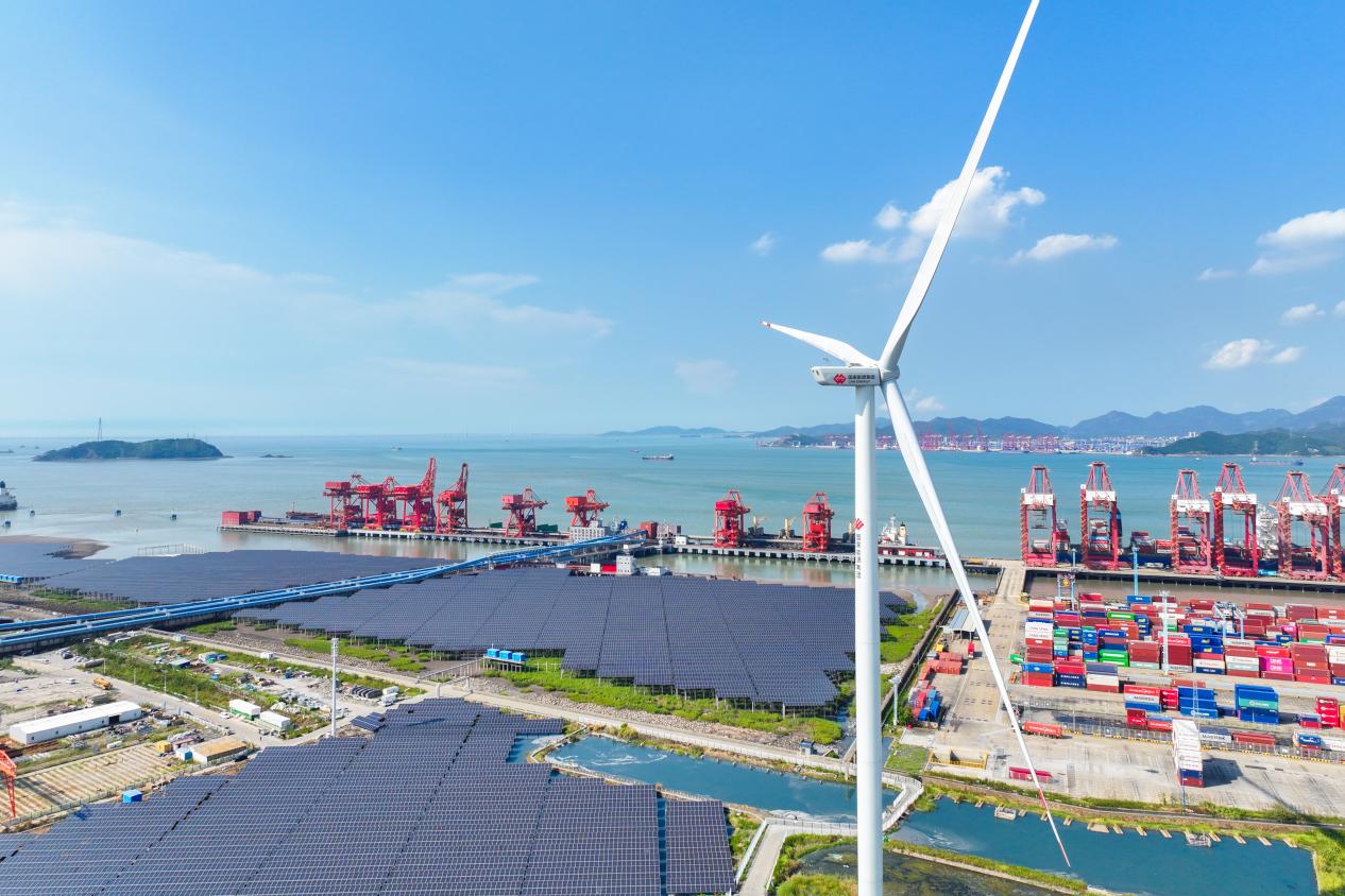 图为北仑电厂在厂内建设光伏和风机。