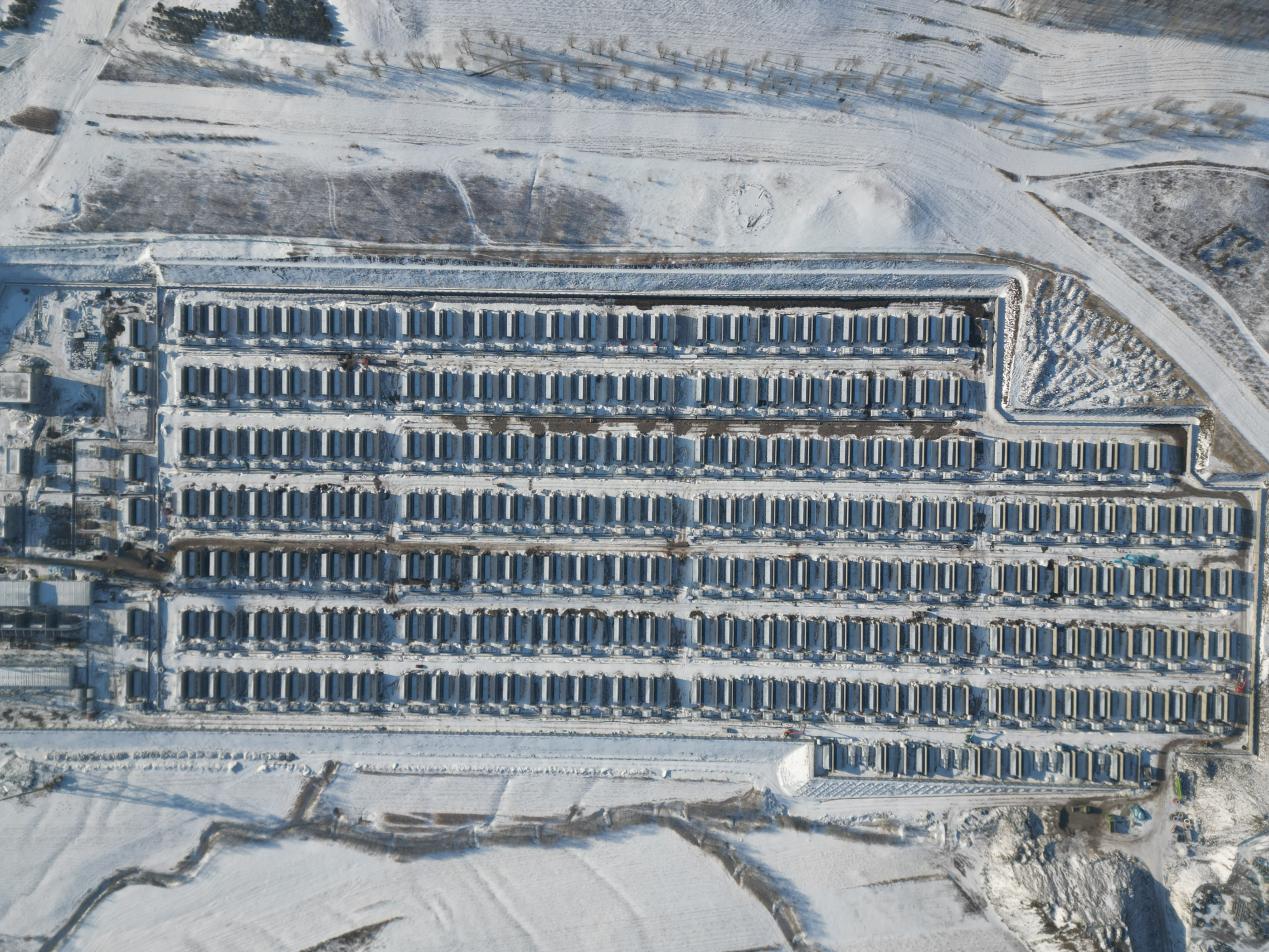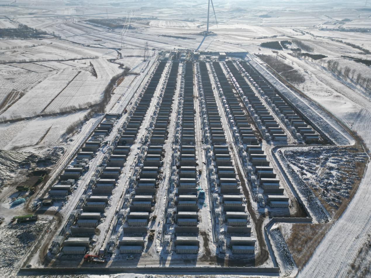 项目位于内蒙古自治区呼伦贝尔市阿荣旗,总装机容量为100万千瓦/400万千瓦时,项目配套400套电池舱、200套PCS舱,通过2回220千伏架空线路接入阿荣旗500千伏变电站,构建起“电源调节、电网支撑、负荷响应”一体化能源调节体系。