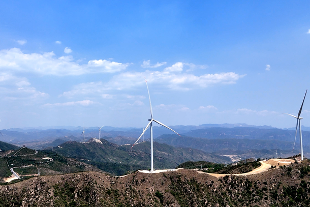 图为河北公司龙山电厂涉县208兆瓦风电项目北区14台风机并网发电大景图