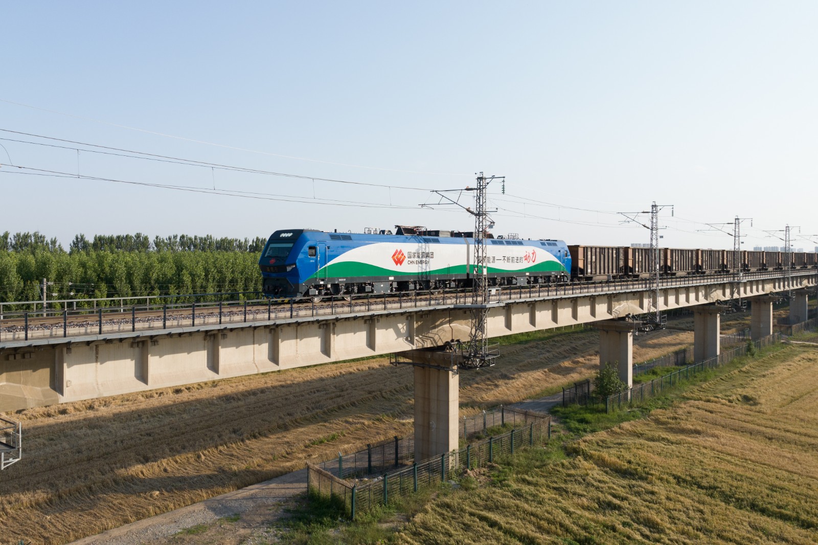 满载乌金的朔黄铁路两万吨重载列车驶向黄骅港。