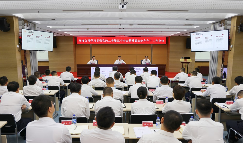 大唐环境产业集团股份有限公司召开学习贯彻党的二十届三中全会精神暨2024年年中工作会议,动员全体干部职工凝心聚力、追求卓越,奋力完成全年任务目标,为大唐环境公司建设一流综合环境治理服务商提供坚强保障,为中国大唐集团公司加快建设世界一流能源供应商贡献力量。