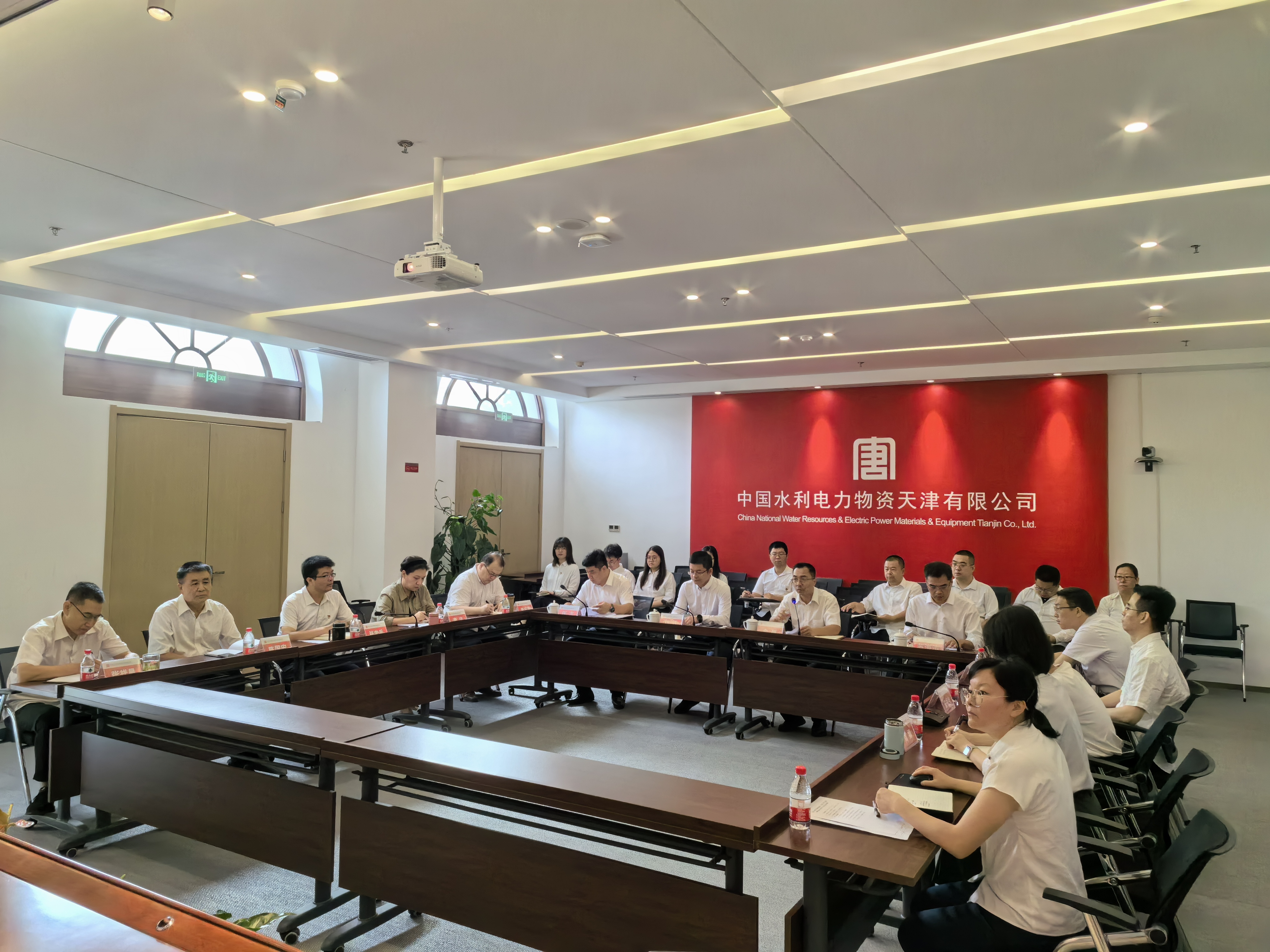 中水物资天津公司领导班子、项目部经理、中层干部、全体党员参加会议。