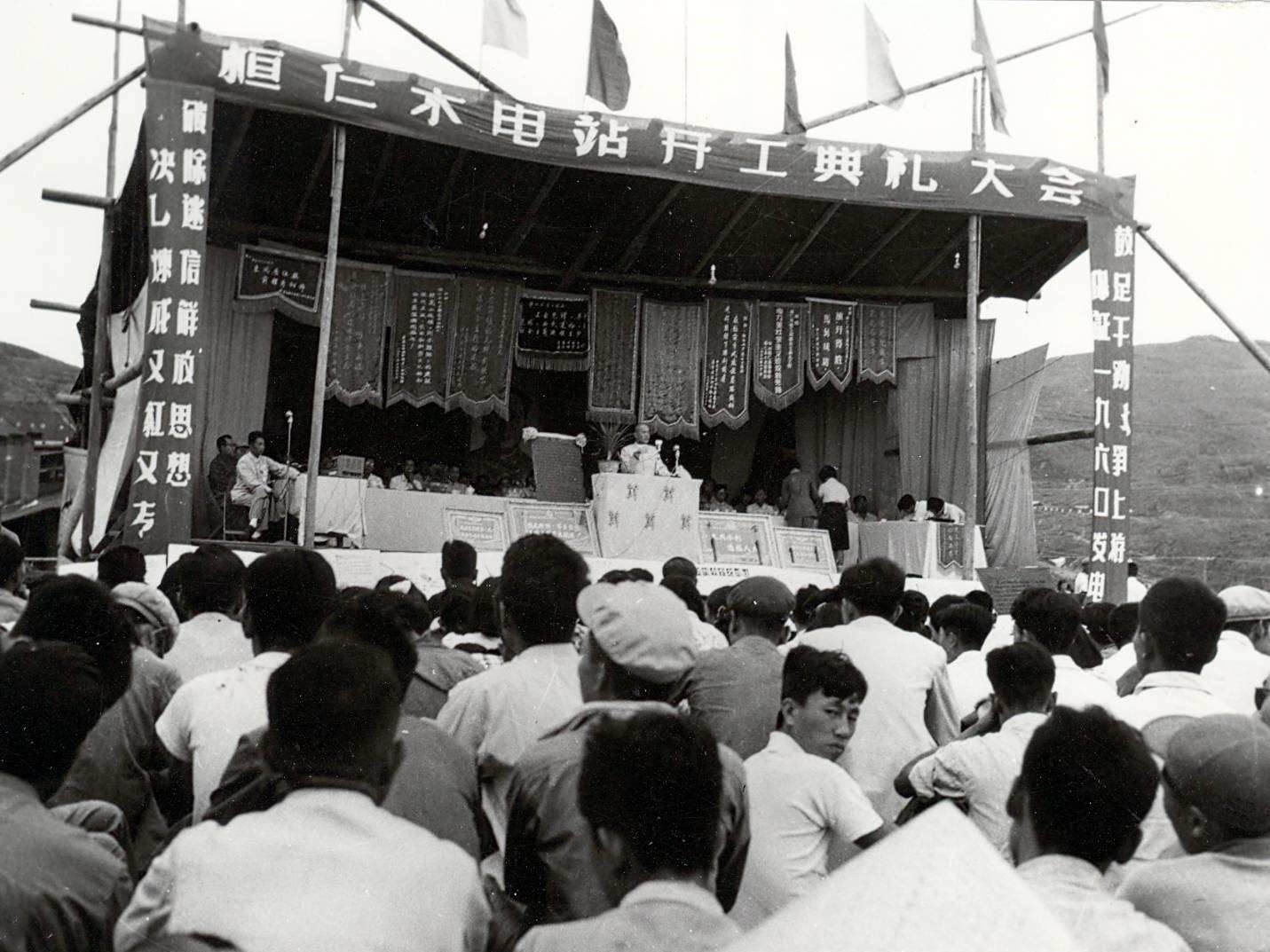 1958年,一批身穿工作服、头戴红星帽的年轻人怀着“建成浑江流域第一座水电站”的壮志,在浑江翻腾的浪花中,开始了建设工作。同年8月1日,在浑江边的草地上人声鼎沸,这群水电建设者们搭了一个简易平台,召开了桓仁电站开工典礼大会,至此拉开了桓仁水电站建设的序幕。