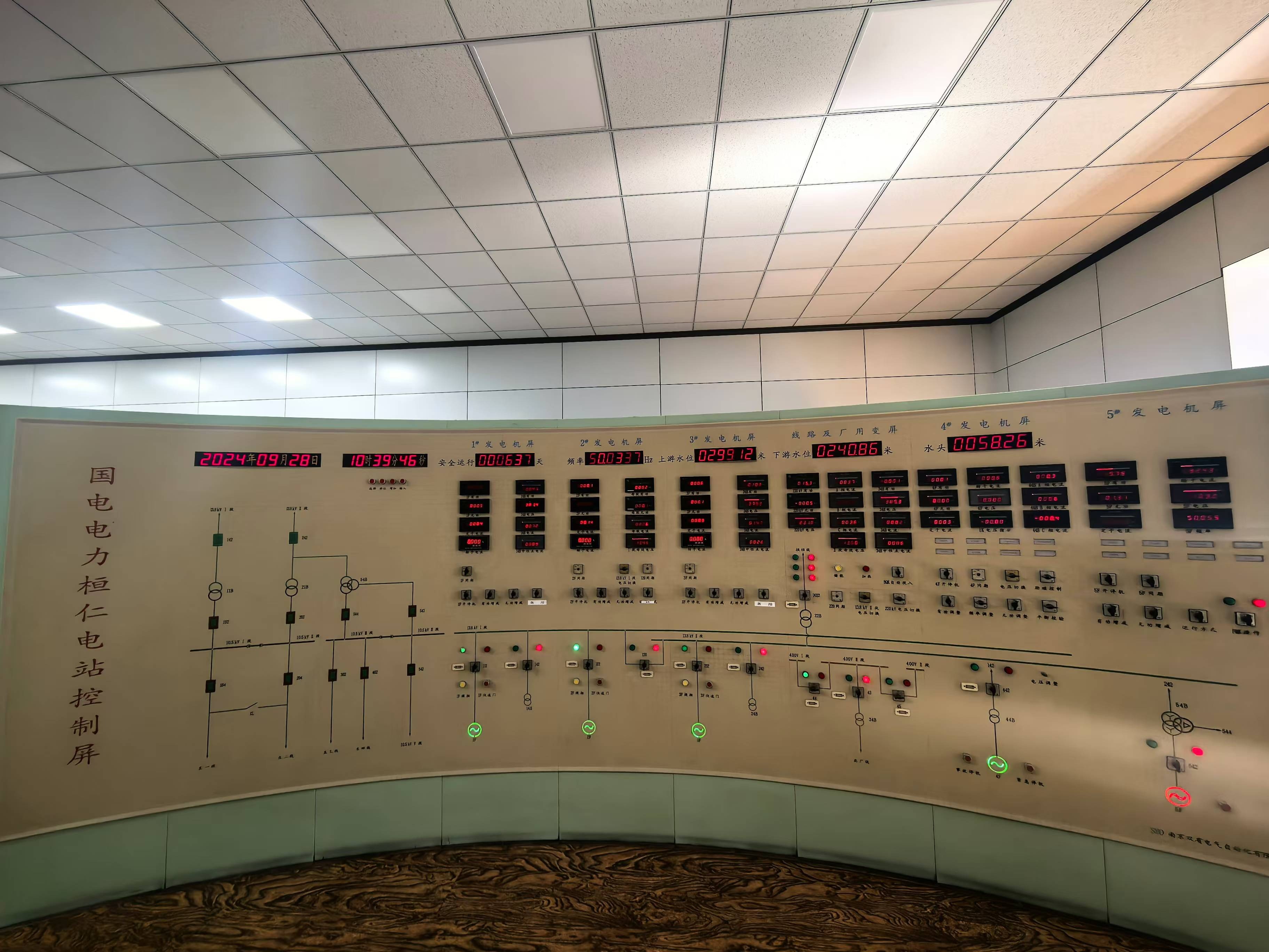 桓仁水电站中控室内的控制屏。