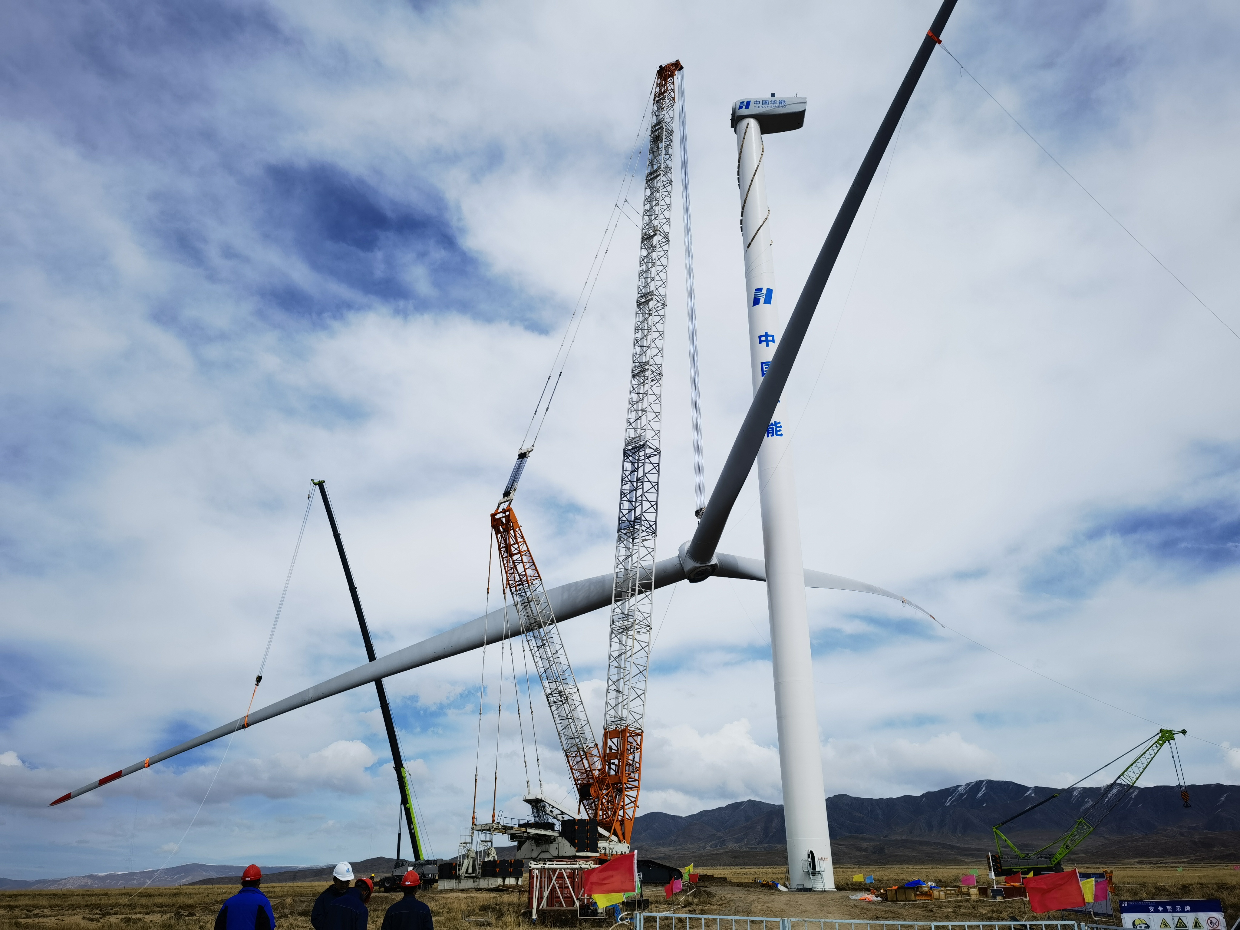 党员先锋正在项目现场指挥协调风机吊装工作。