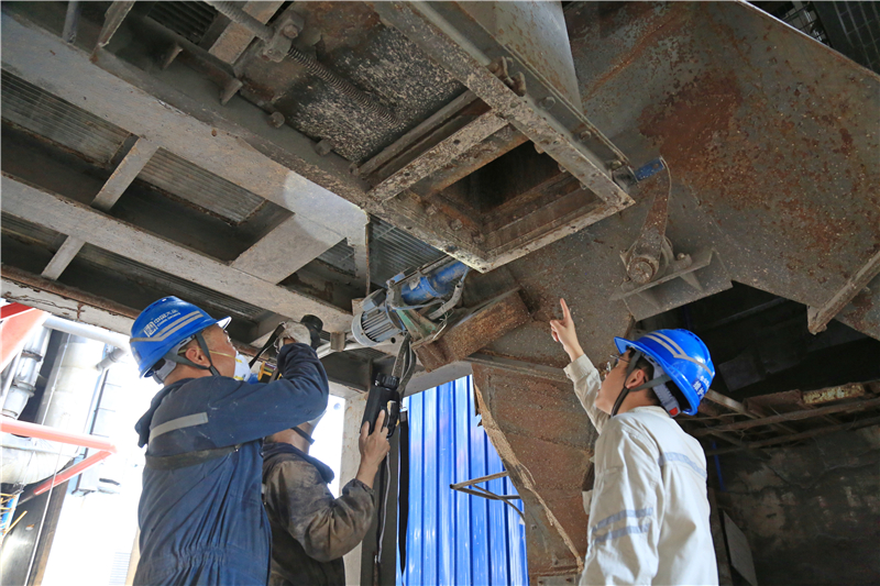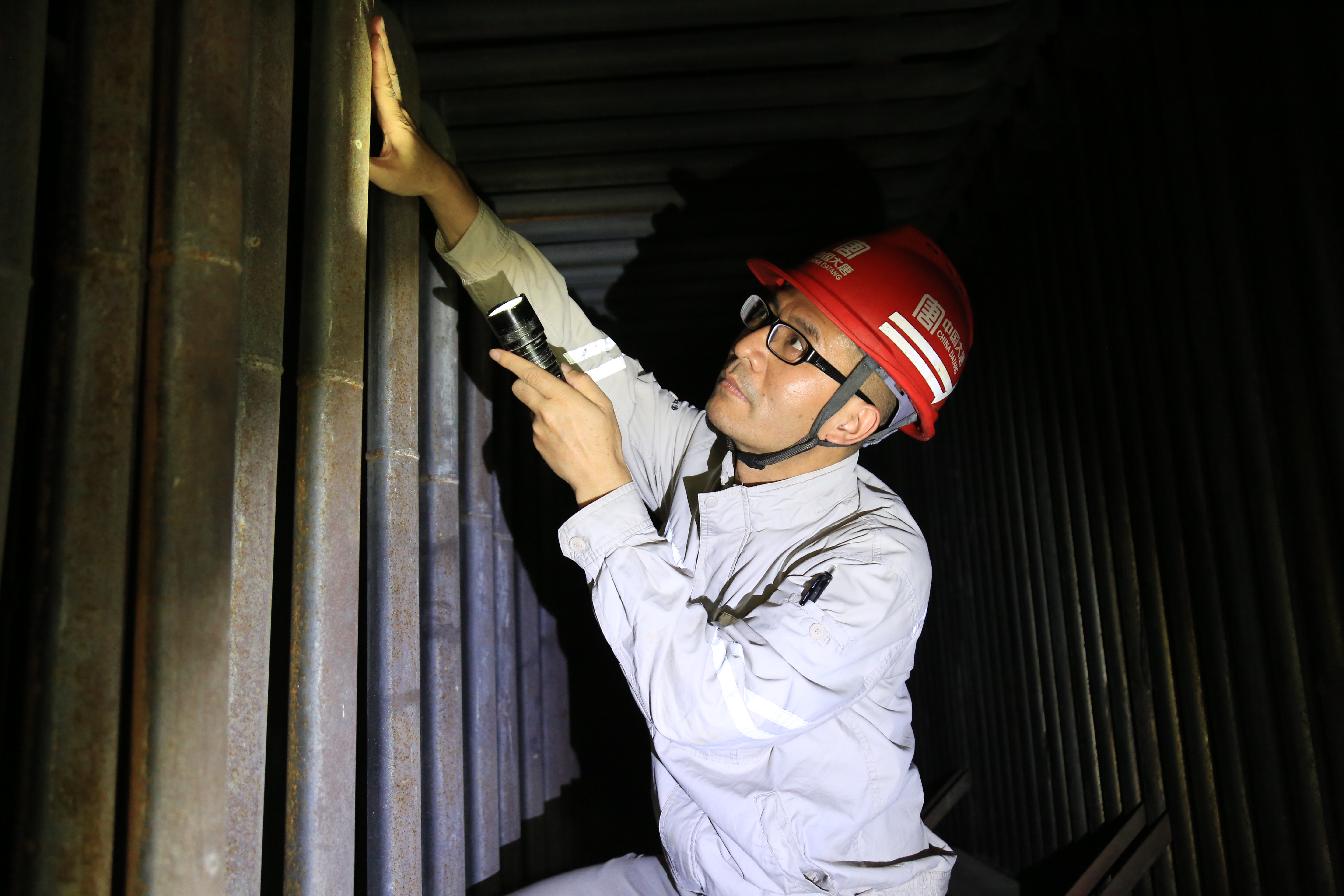 首次担任“四管”检查组组长,农天帝丝毫不敢松懈。由于熟悉“四管”专业知识的老师傅较少,新老搭配协调工作安排成为他最头疼的事情。有时人员不够,他检查完自己的区域,还要马不停蹄帮忙别的区域检查。在省煤器区域检查时,他发现钢梁焊口有细微裂纹,便立刻用记号笔标注:“这里必须重新焊接,不然可能引发整体结构下沉。”整个检修期间,他带领团队排查出受热面减薄、支撑杆磨损等几十项重要缺陷,每一项都记录得清清楚楚。