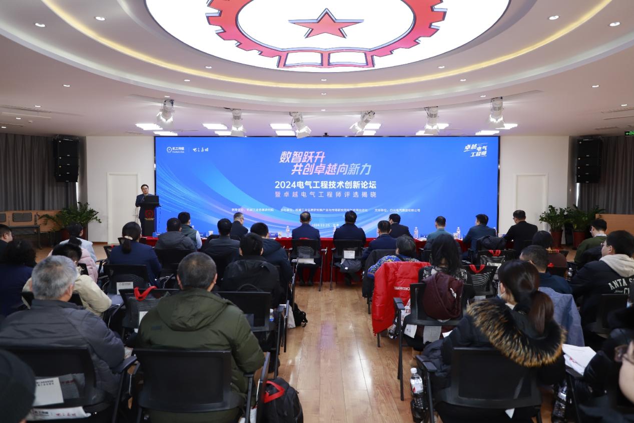 2024年12月25日,“2024 电气工程技术创新论坛暨卓越电气工程师评选揭晓”活动在机械工业信息研究院举办。机械工业信息研究院党委副书记周宝东,中国电力科学研究院碳中和与标准所教授级高工刘宏志,北方工业大学储能技术研究院院长、国家级人才李建林,中国石化工程建设有限公司首席专家王树国,苏州市智慧能源技术重点实验室主任汪义旺,中国民航信息网络股份有限公司基础保障部技术总监张震,北京城建六建设集团副总工程师、机电事业部总工程师刘会彬,中国核电工程有限公司核工程院电气设计所室主任王志坚等众多嘉宾参加会议。与会嘉宾结合所处行业的实践经验,对新型电力系统、新能源储能和重点行业电气工程实践等议题进行了深入探讨交流。机械工业信息研究院产业与市场研究所所长、《电气应用》杂志社长田付新主持会议。