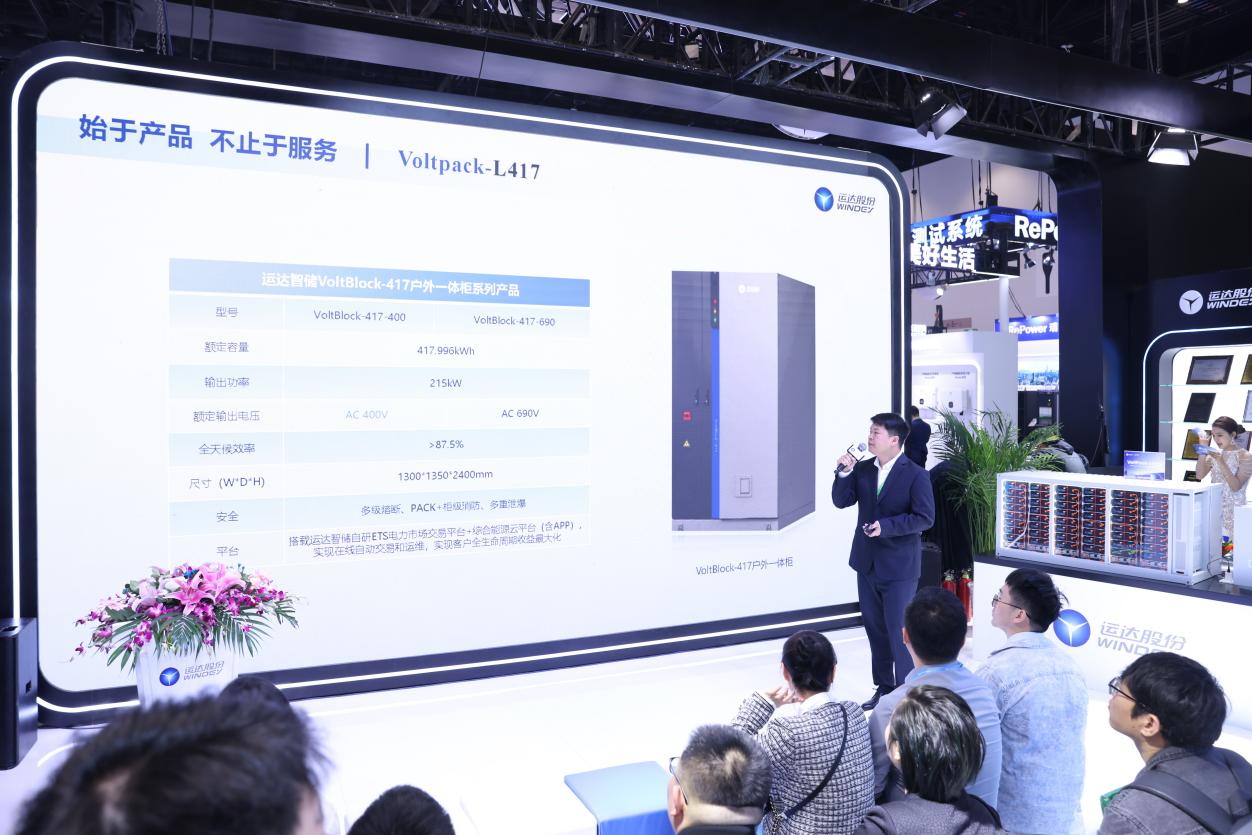 新能源革命正风起云涌,容量大小已成为储能产品至关重要的核心指标。展区内,运达智储全栈自研的新品VoltPack-L6250智慧液冷储能系统,通过技术升级、新能源联合应用,以单柜最大容量、综合收益最大化成就高能量密度、高安全、高收益的产品禀赋,适配新能源电站、源网荷储一体化等多元场景,开启智储领域新篇章。