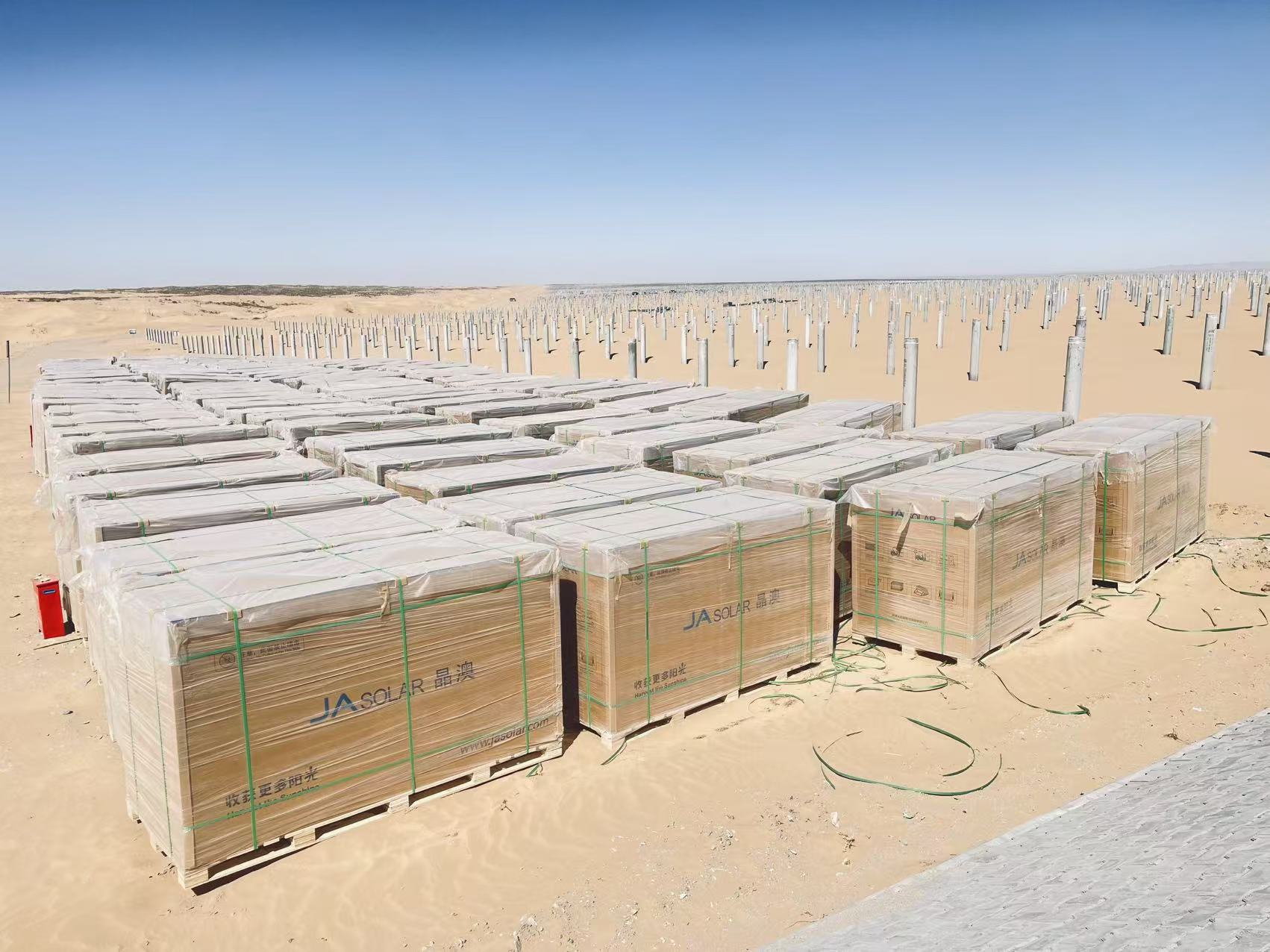 但晶澳科技很早就开始研究沙漠应用环境的痛点并推出解决方案。多年来,DeepBlue 4.0 Pro组件在蒙西沙戈荒大基地、库布其沙漠、乌兰布和沙漠、科尔沁沙地等地区的相关项目中皆有令人满意的表现,就此而言,此次苏计沙地的环境挑战并不是最高的。