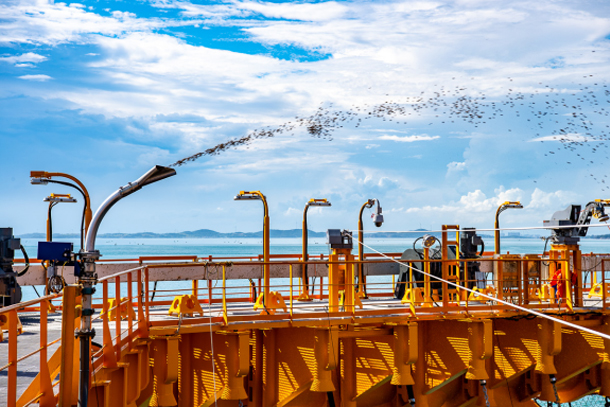 建成投运以来,“国能共享号”运行情况良好,风电机组可靠性保持在95%以上,在大风季期间创造了连续120小时满发的纪录,一个养殖周期渔获收入可达数百万元,真正实现“电渔双收”的复合效益。同时,项目也成功经受住了多个台风的考验,展现出了良好的稳定性和可靠性。