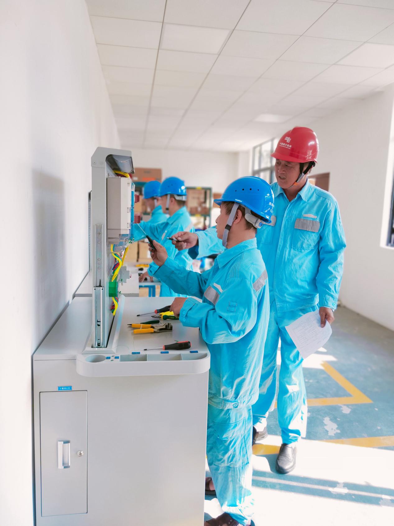 在贵州电网铜仁思南供电局实训现场,新旧场景形成鲜明对比:过去工具杂乱、导线纠缠,如今银色柜体展开后,分色导线整齐排列,操作如抽纸巾般便捷。
