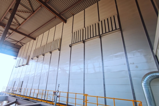 国家能源集团连江电厂降噪项目完成后的锅炉侧墙。