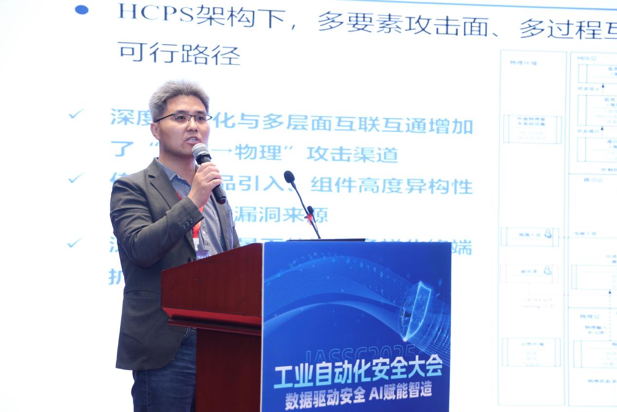 机械工业仪器仪表综合技术经济研究所信息安全室副主任张亚彬做《工业控制系统信息安全:HCPS融合安全的创新》主题报告,系统阐述了智能制造新时代下的安全挑战与创新路径。其中指出,随着智能化生产、网络化协同等技术驱动工业系统架构向“人—信息—物理系统(HCPS)”深度融合演进,跨层多阶段复合攻击风险显著增加,传统安全机制面临“难辨识、难控制、难预测”的痛点。为此,需构建以“韧性防御”为核心的HCPS融合安全技术体系,通过跨层攻击风险评估、态势感知、联合防御与协同应急的全链路闭环赋能,协调Security与Safety,化解跨层攻击隐患。