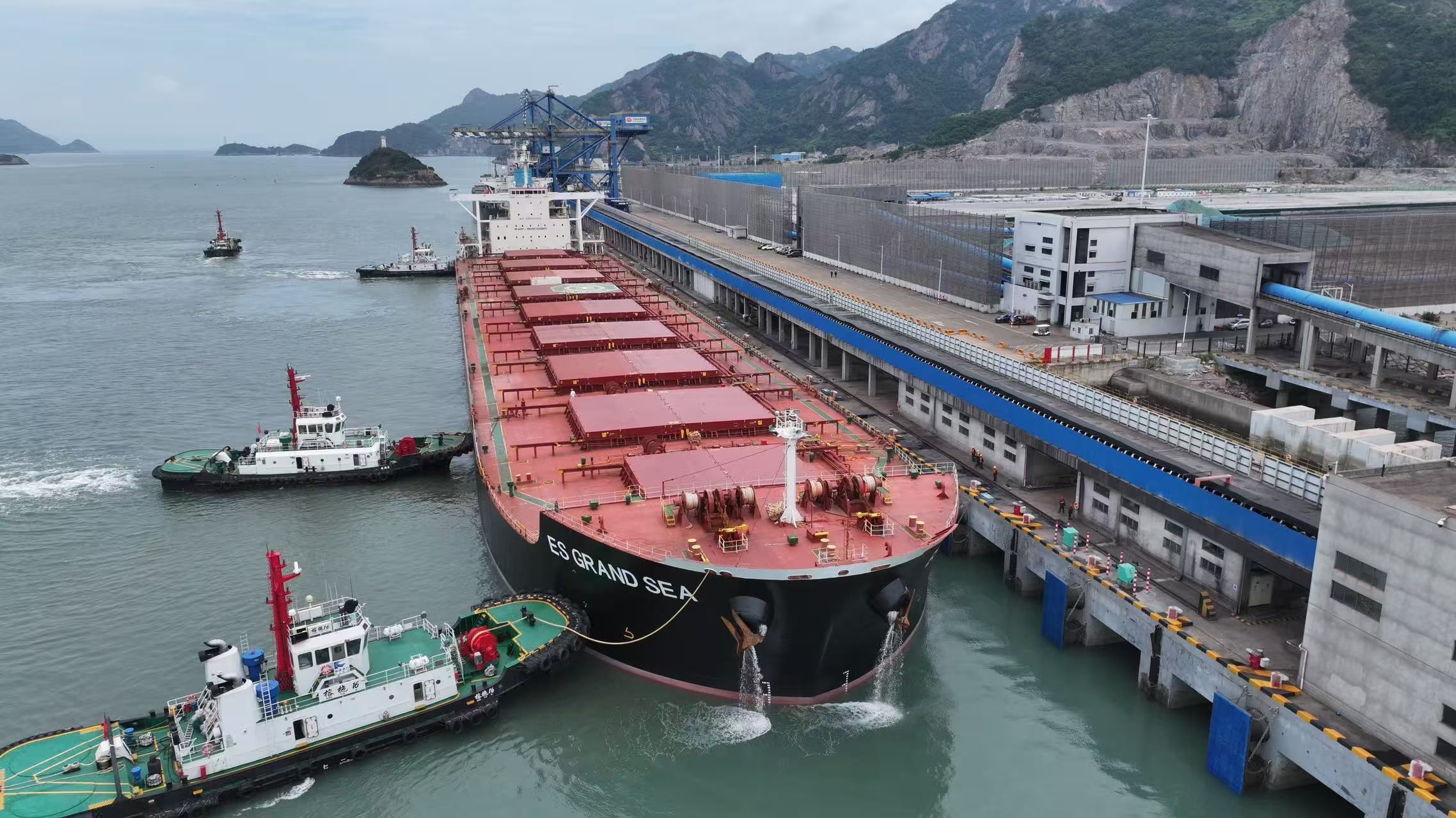 满载进口煤的“ESGRANDSEA”号正在靠泊。