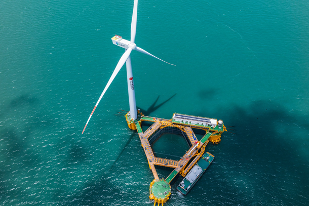 全球首个漂浮式风渔融合项目“国能共享号”。