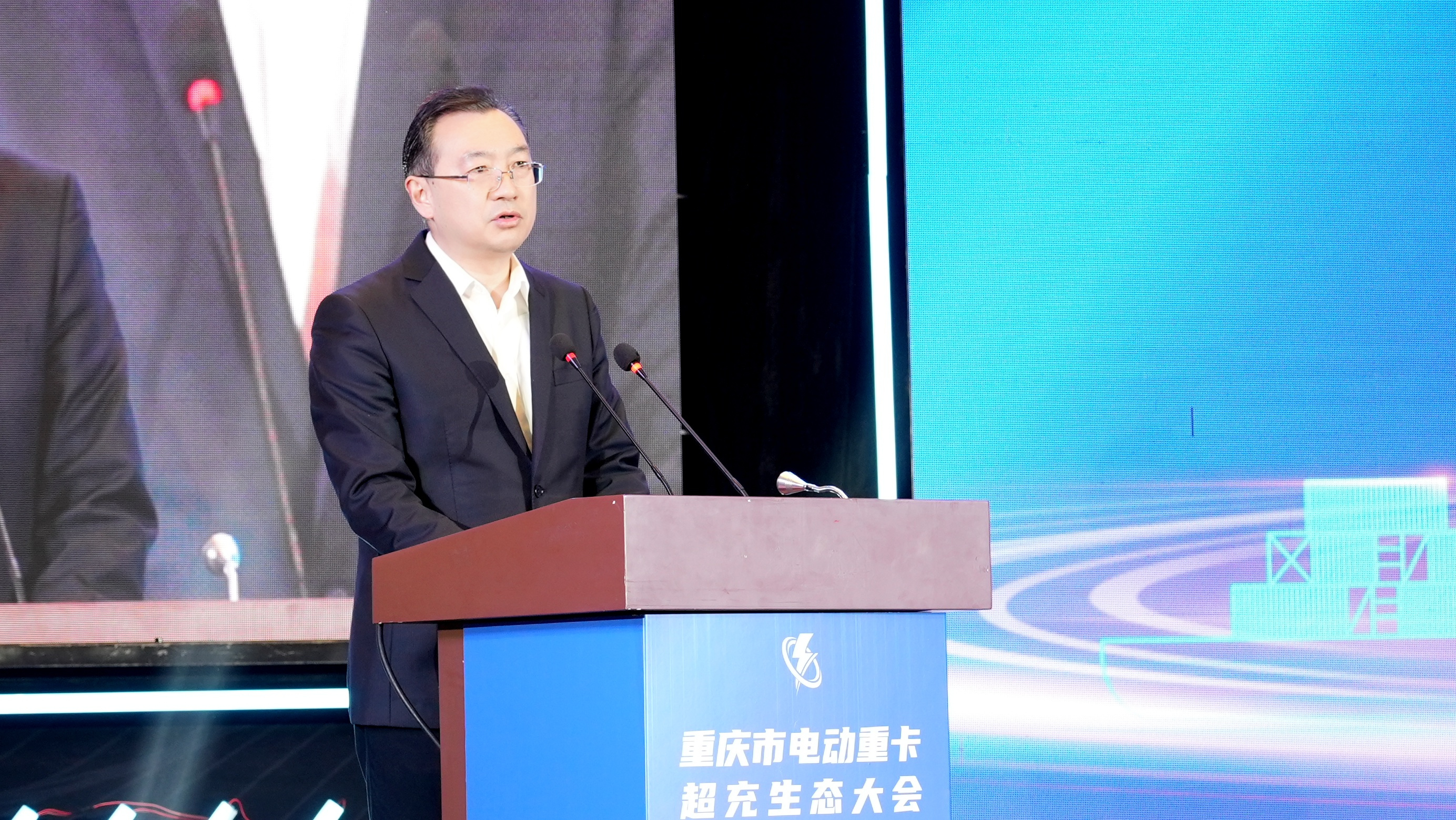 重庆市经济和信息化委员会党组成员、副主任涂兴永在致辞中表示,重庆正在全力打造具有国际竞争力的智能网联新能源汽车之都,重卡商用车是重要组成部分。今年1—10月,全市商用车产量42.3万辆,占全国商用车产量的14.1%。目前,全市营运货车保有量约22万辆,其中重卡12万辆,电动重卡约2700辆。为解决电动重卡“续航焦虑”,重庆市经济和信息化委员会作为行业主管部门正在从3个方面加力推动电动重卡超充生态发展。