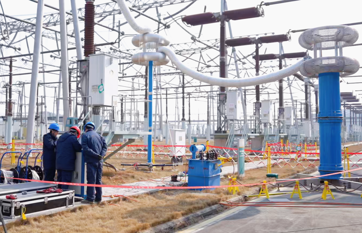 ±500千伏龙泉换流站作为三峡电力外送的重要枢纽,承担着将三峡清洁水电转换为直流电并向华东地区输送的关键任务,站内断路器是保障电力系统安全稳定运行的核心设备之一。为确保迎峰度冬期间电力供应的可靠性与稳定性,消除潜在隐患,国网湖北直流公司检修中心组织检修人员对5033断路器C相进行了灭弧气室更换作业。更换作业完成后,随即对断路器C相进行了全面的绝缘性能评估,其中耐压试验作为检验设备绝缘强度的“终极大考”,直接关系到设备投运后的安全运行。
