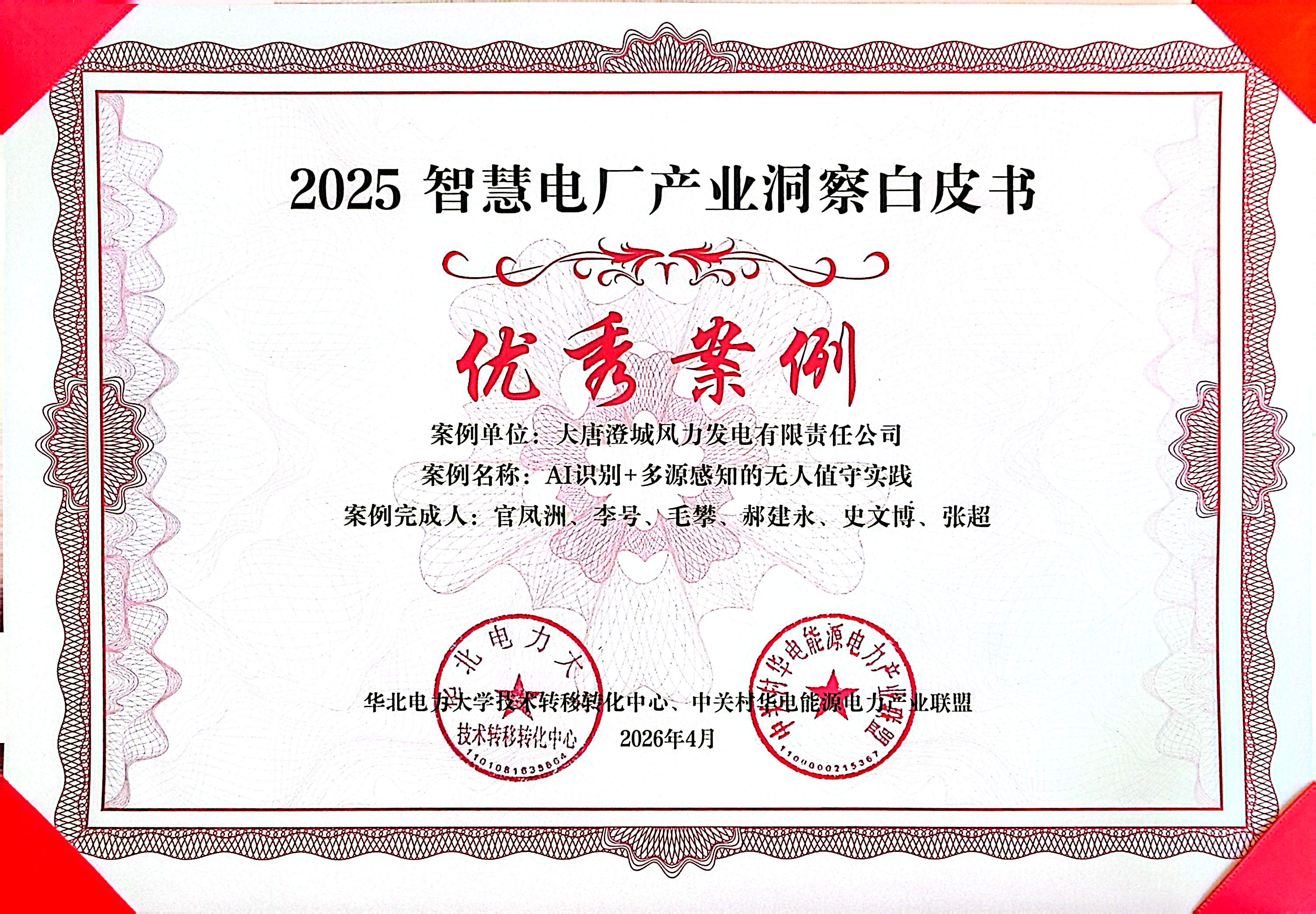 中国能源新闻网讯(张超)4月1日,由华北电力大学组织举办的2026年智慧电厂论坛在北京召开,大唐陕西发电有限公司新能源分公司(简称“大唐陕西新能源公司”)申报的铁庄风电场《AI识别+多源感知的无人值守实践》成功入选2025年智慧电厂产业洞察白皮书,该公司受邀作专题分享,向全行业展示智慧化运维领域的标杆实践与成功经验。