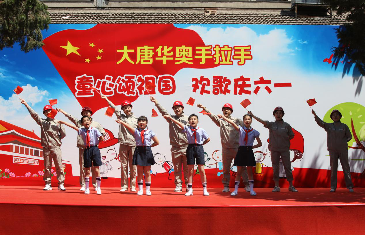 大唐环境对农民工子弟学校——北京市石景山华奥学校连续五年开展“文化助学”活动,图为开设【大唐启明星课堂】系列活动之“我和我的祖国”千人音乐课。