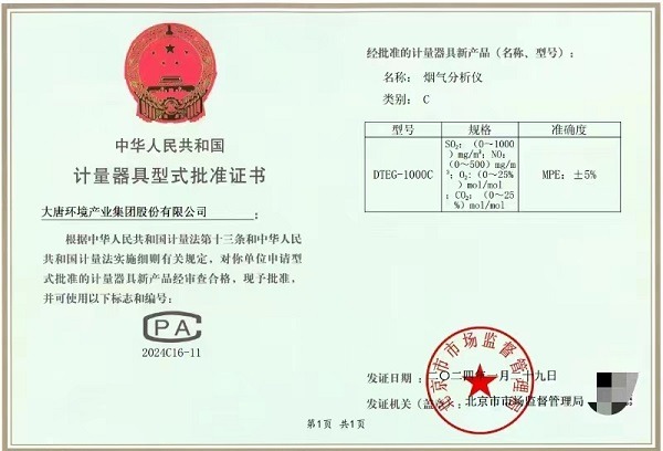 中国能源新闻网讯(范长丽 李飞)1月31日,大唐环境产业集团股份有限公司(以下简称“大唐环境公司”)获取北京市市场监督管理局颁发的烟气分析仪计量器具型式批准(CPA)证书。这是中国大唐集团公司系统内唯一获得该证书的企业,为服务绿色转型和美丽中国建设,加快构建清洁低碳、经济高效的新型电力系统奠定坚实基础。