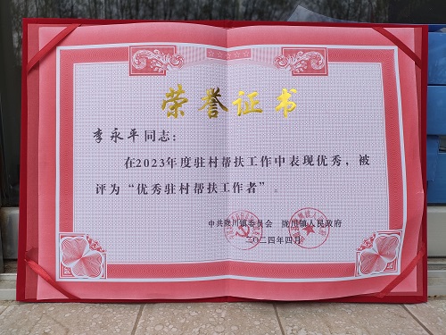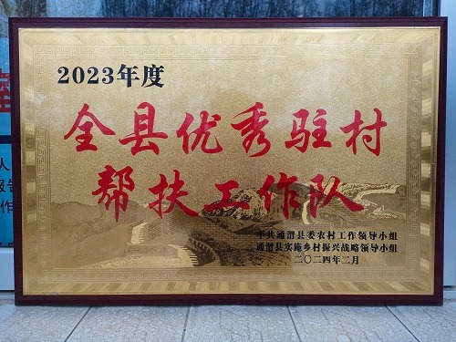 中国能源新闻网讯(张潘江)4月8日,国网甘肃通渭县供电公司收到了由中共通渭县委农村工作领导小组、通渭县实施乡村振兴战略领导小组颁发的2023年度“全县优秀驻村帮扶工作队”荣誉称号奖牌。派驻甘肃省通渭县陇川镇李岘村驻村第一书记兼工作队队长李永平获得中共陇川镇委员会2023年度“优秀驻村帮扶工作者”称号。