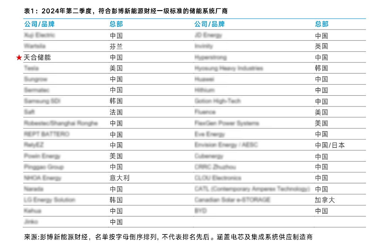 近日,彭博新能源财经发布2024年第二季度全球Tier1一级储能厂商榜单,天合储能继第一季度后,凭借可靠的产品实力、超高的可融资性和全球品牌认可,再次荣登2024年第二季度一级储能厂商榜单,再证天合强大的产品力和品牌力。