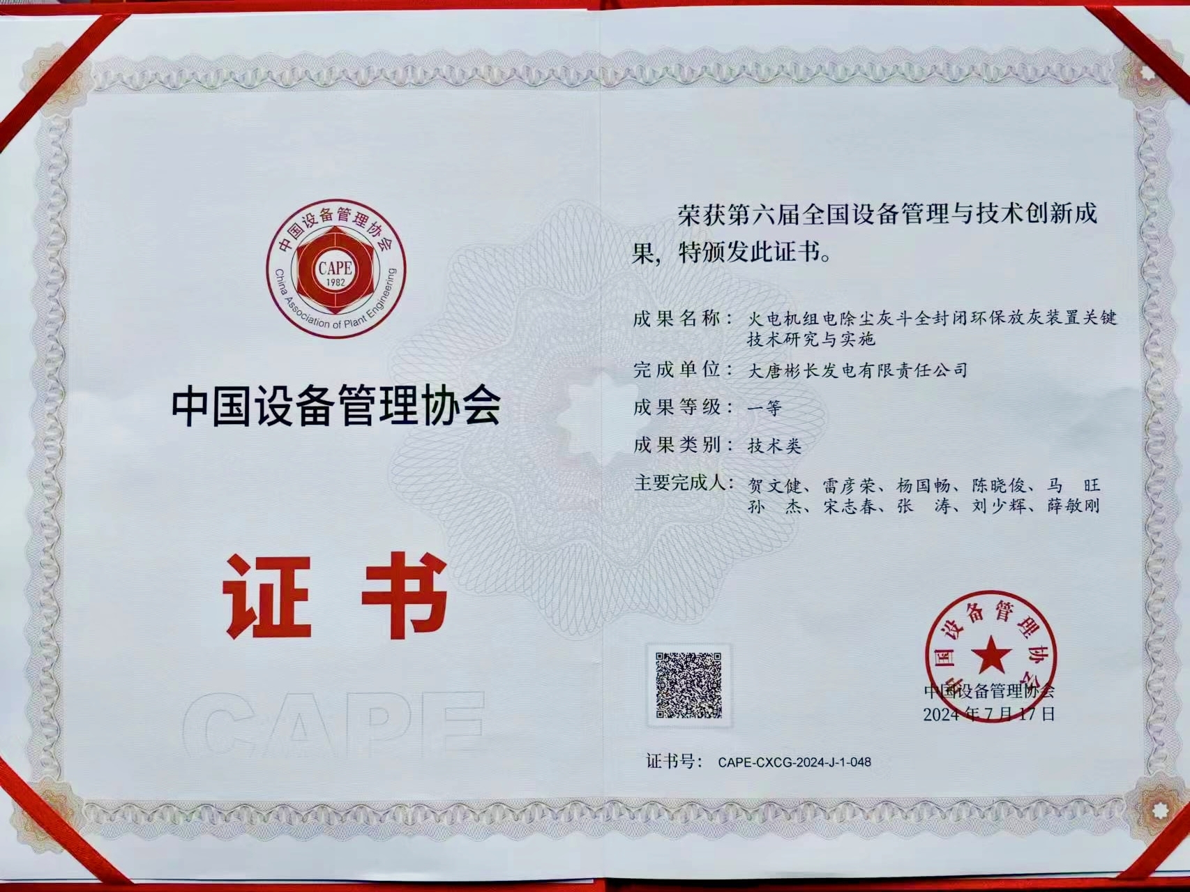 获奖的两项成果中,《火电机组电除尘灰斗全封闭环保放灰装置关键技术研究与实施》消除了快速事故放灰过程环境粉尘污染问题,并为火电企业除灰系统增容改造提供了新方法和新思路,达到国内先进水平;《火电机组湿法烟气脱硫废水零排放旋转雾化干燥装置关键技术研究与实施》解决了湿法烟气脱硫系统废水无法处理的难题,可在提高脱硫效率的同时,降低氯离子浓度高对管道、箱罐体腐蚀加剧问题。