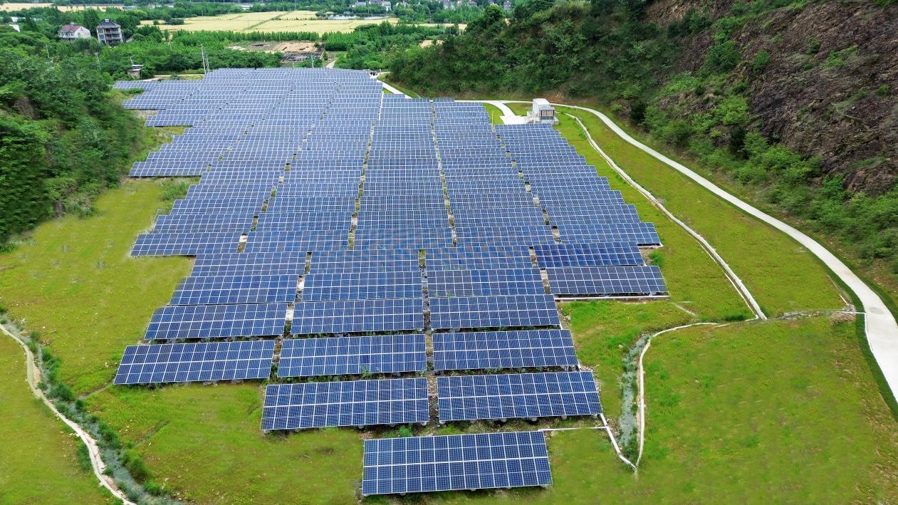 长兴鑫江矿2.1兆瓦矿山治理光伏发电项目位于长兴县和平镇霅溪村废弃矿区,占地100余亩,是国家电投在浙江的首个能源生态融合发展项目,实现了对采矿沉陷区和废弃矿山的生态修复,通过与当地村集体度电分成的方式,探索“共同富裕”新路径。