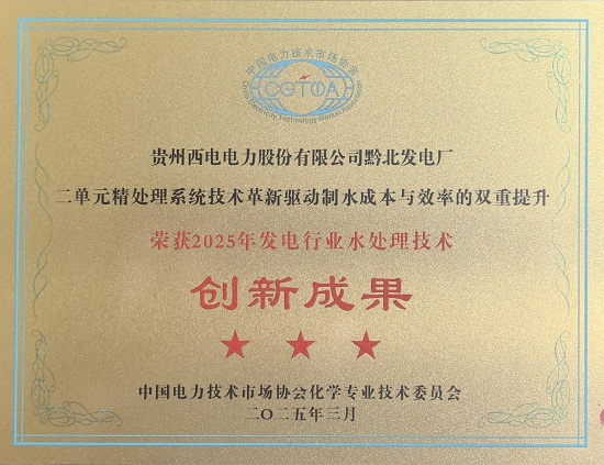 中国能源新闻网讯(唐锡红 金相宜)近日,2025年(第九届)发电行业水处理技术研讨会在山东青岛举行,国家电投贵州金元黔北电厂化学专业科技创新技术《二单元精处理系统技术革新驱动制水成本与效率的双重提升》荣获2025年发电行业水处理技术创新成果奖(三星)。