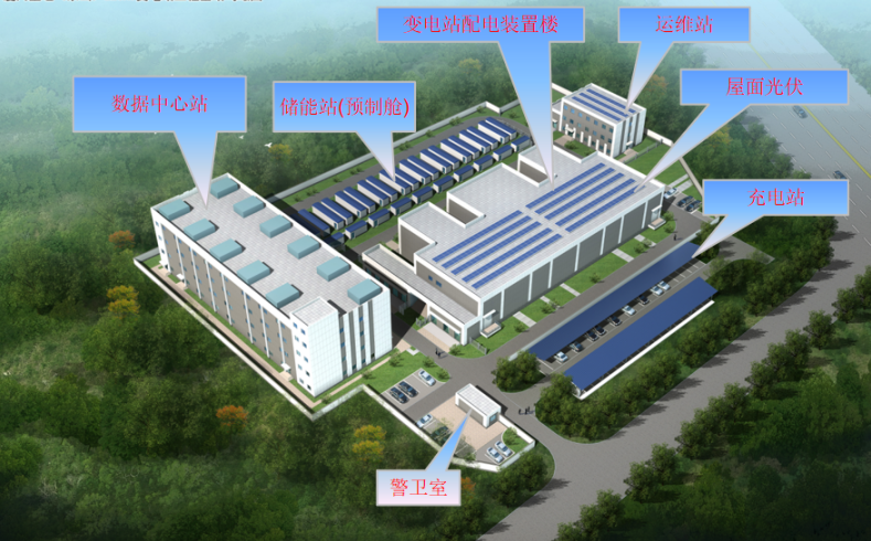 新技术应用:首次实现”变电站+数据中心+储能站“的一体化布局,实现节地、节能、节省投资;首次提出多站融合能源综合体全面感知方案,提升三维数字化应用,达到安全智能管控、提升运检效益。