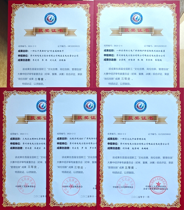 在岗位创新赛道,鸭溪电厂技术团队深耕生产一线,以突破性成果破解行业痛点:《一种永不更换的"Ω"形金属膨胀节》项目突破性优化设备核心性能,大幅降低运维成本与安全风险,凭借技术创新性与实践价值斩获二等奖;《远程实现6kV厂用电快切装置分合闸回路监视》与《一种实用的火电厂燃煤锅炉新型除焦剂添加装置》两大项目,聚焦生产关键环节的效率提升与难题破解,以高效、务实的技术改进方案,为火电行业技术升级提供了可复制、可推广的实践样本,同获三等奖。